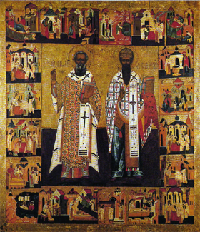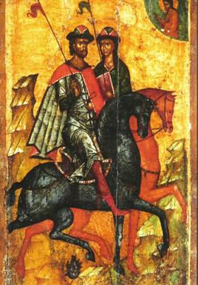 [ 聖ボリースと聖グレープ ](左) 15世紀中 |