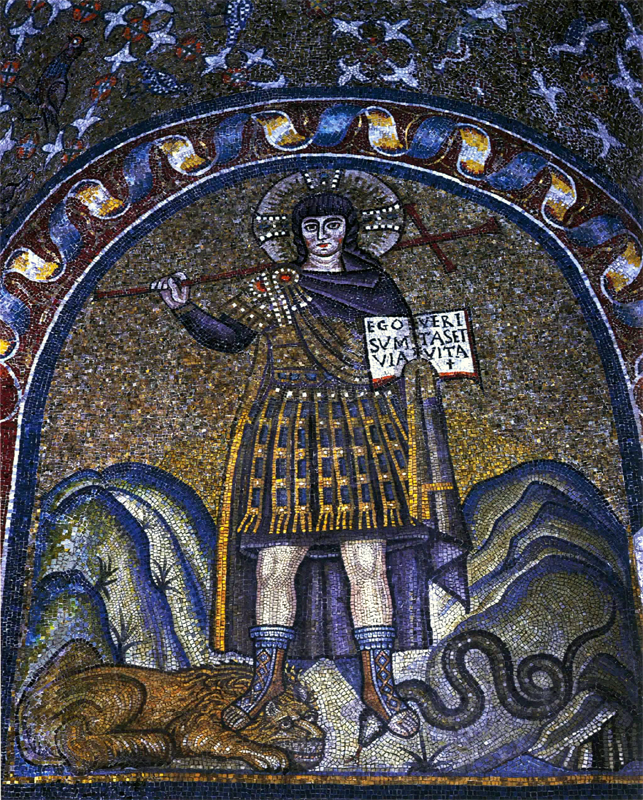 [ 殉教聖人ラウレンティウス ] 5世紀 [モザイク] ガッラ・プラチーディアの廟堂 ラヴェンナ(イタリア) | [ 悪と闘うキリスト ] 5世紀末〜6世紀初 大司教館付属礼拝堂 [モザイク] ラヴェンナ(イタリア) | [ 聖テオドロスと聖ゲオルギウスを伴う 玉座の聖母子 ] 6世紀 聖カテリーナ修道院蔵 シナイ山(エジプト) |