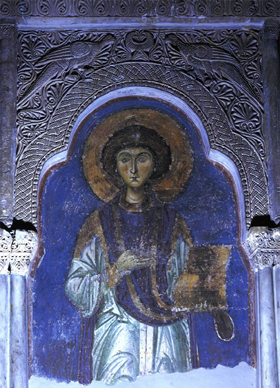 [ 全能の救世主 ] 7世紀 聖カテリーナ修道院蔵 シナイ山(エジプト) | [ 聖パンテレイモン ] 12世紀中 聖パンテレイモン教会堂のフレスコ ネレジ・スコピエ近郊(マケドニア) | [ 大天使ガヴリエル(金髪の天使) ] 12世紀ノヴゴロド出 ロシア美術館蔵 サンクト・ペテルスブルク(ロシア) |