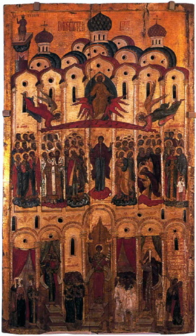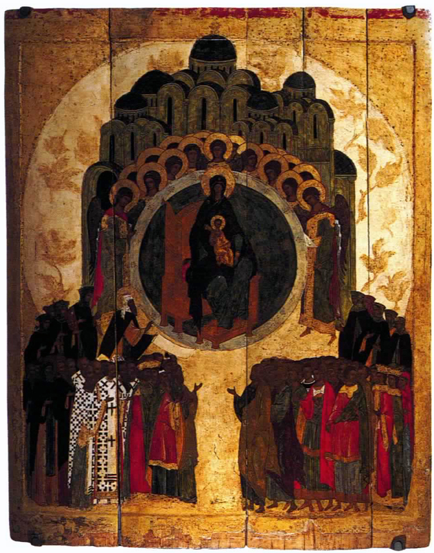 [ 聖セルギーとロストフの諸聖人 ] 15〜16世紀 ロストフ・イコン博物館蔵 ロストフ(ロシア) | [ 聖母子と諸聖人 ] 16世紀 スパソ・エウフミエフスキー修道院蔵 スーズダリ(ロシア) | [ 聖母賛歌 ](万物は汝のものなり) 16世紀末 ゴリツキー修道院蔵 ペレスラーヴリ・ザレスキー(ロシア) |