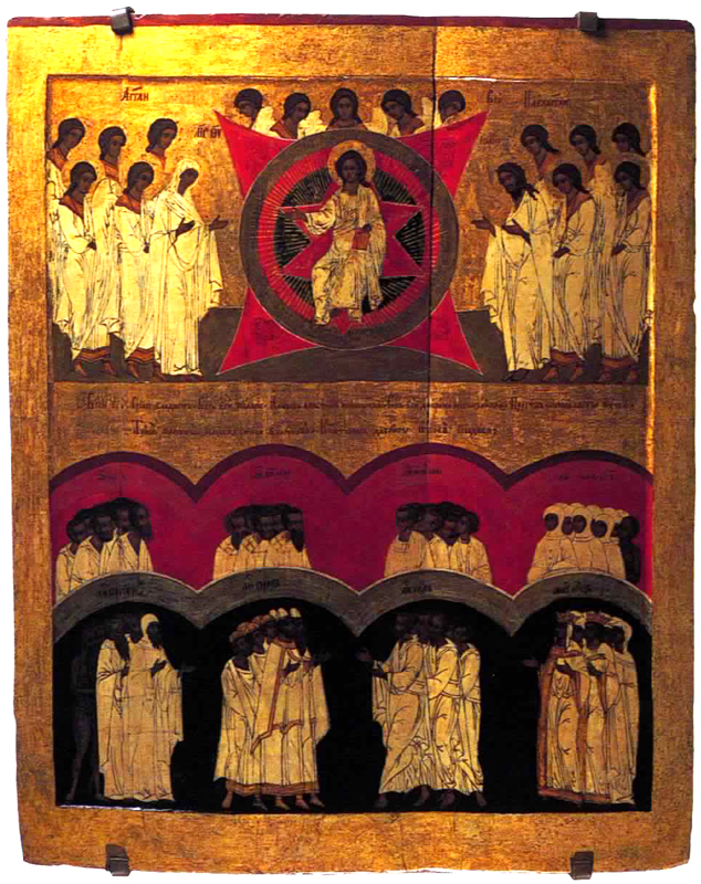 [ 選ばれた聖人 ] 16世紀後 スパソ・エウフミエフスキー修道院蔵 スーズダリ(ロシア) | [ キリストと全聖人の日 ] 16世紀 ロストフ・イコン博物館蔵 ロストフ(ロシア) | [ 聖マリーナ ] 17世紀初 ナショナル・ギャラリー蔵 ソフィア(ブルガリア) |